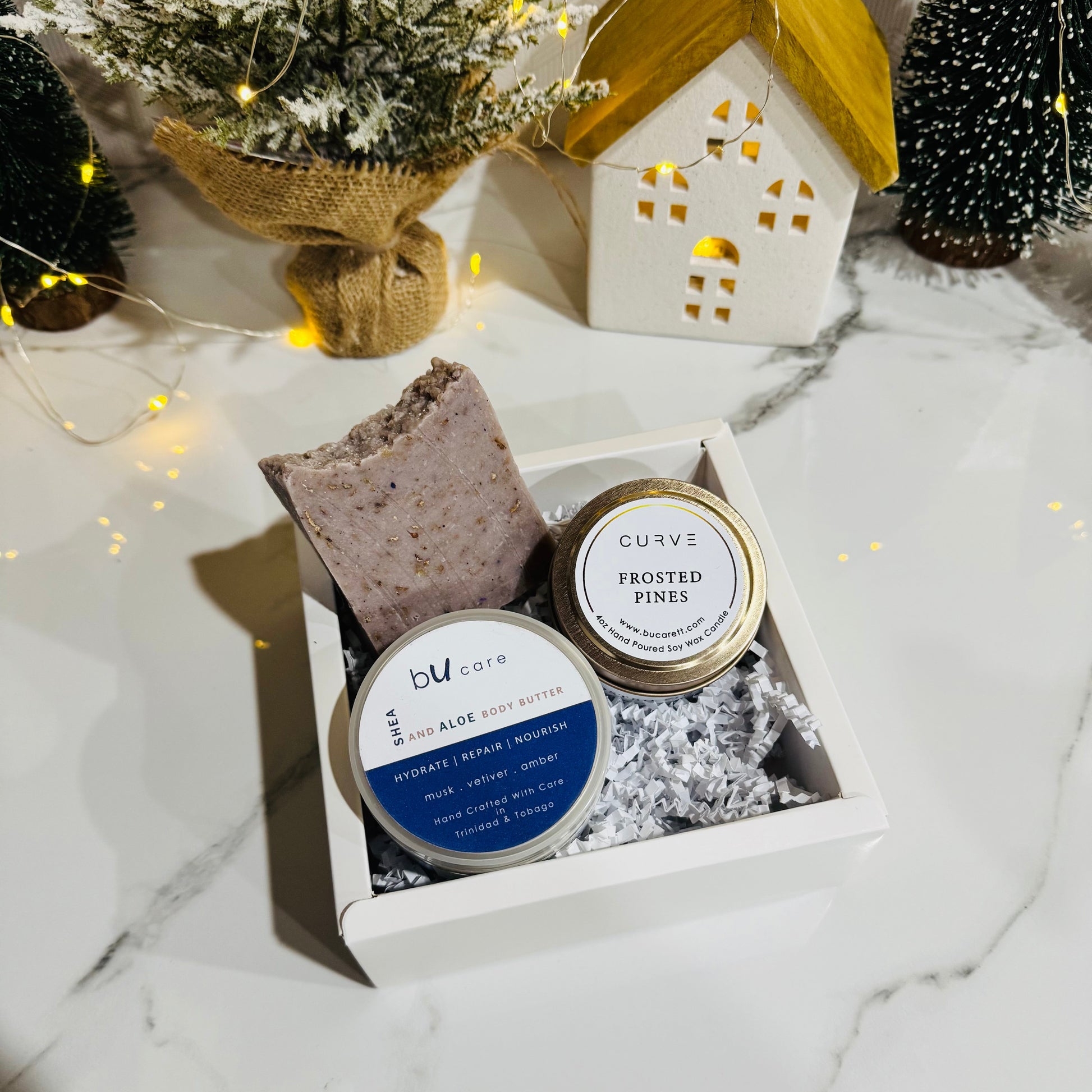 This holiday bundle comes packaged in our festive holiday packaging.